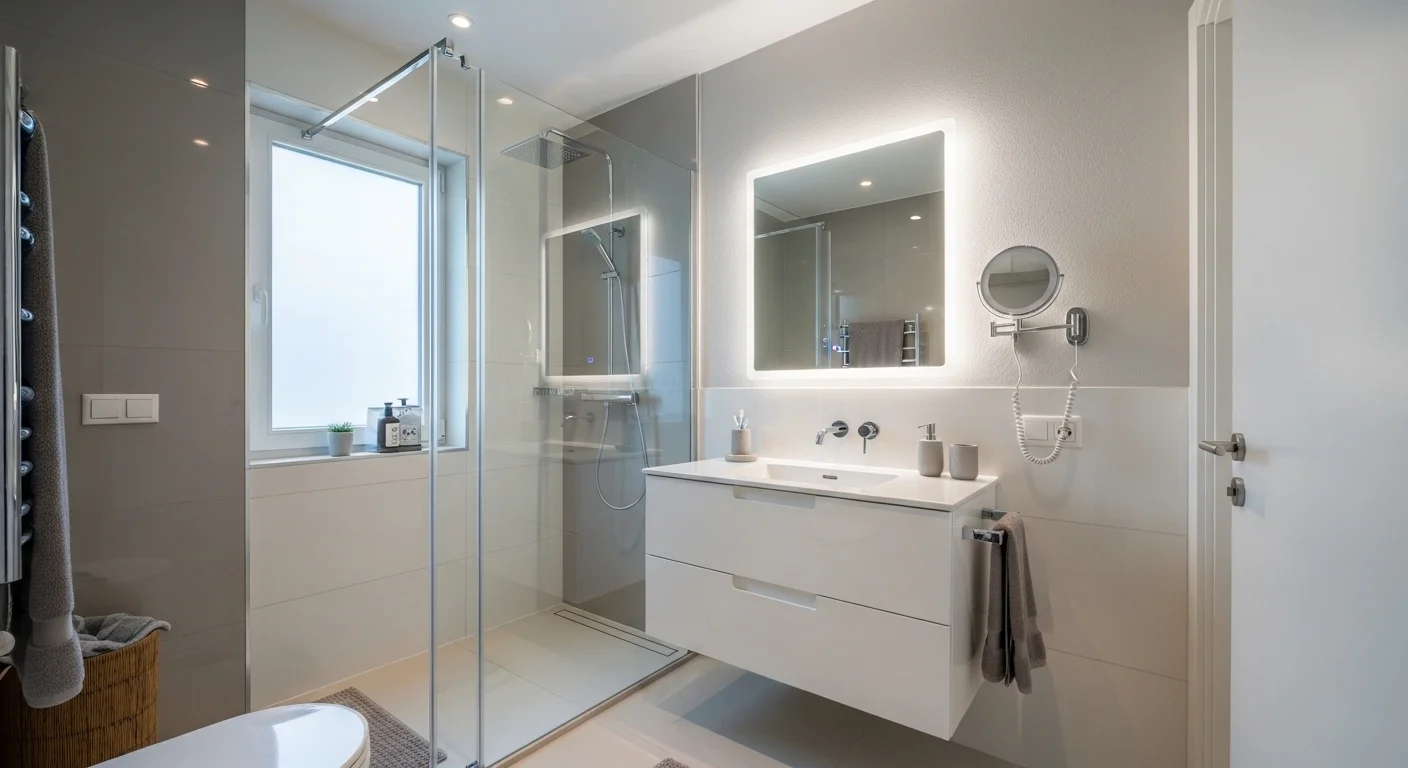 A walk-in shower is one of the most popular solutions for compact spaces. It reduces visual barriers and makes the bathroom appear larger.